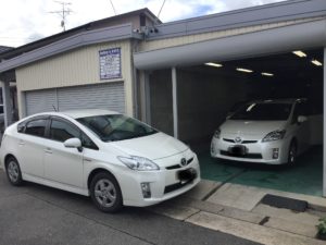 そして工場ではカーフィルムの施工中。こちらのプリウスも売約済みの商品です。